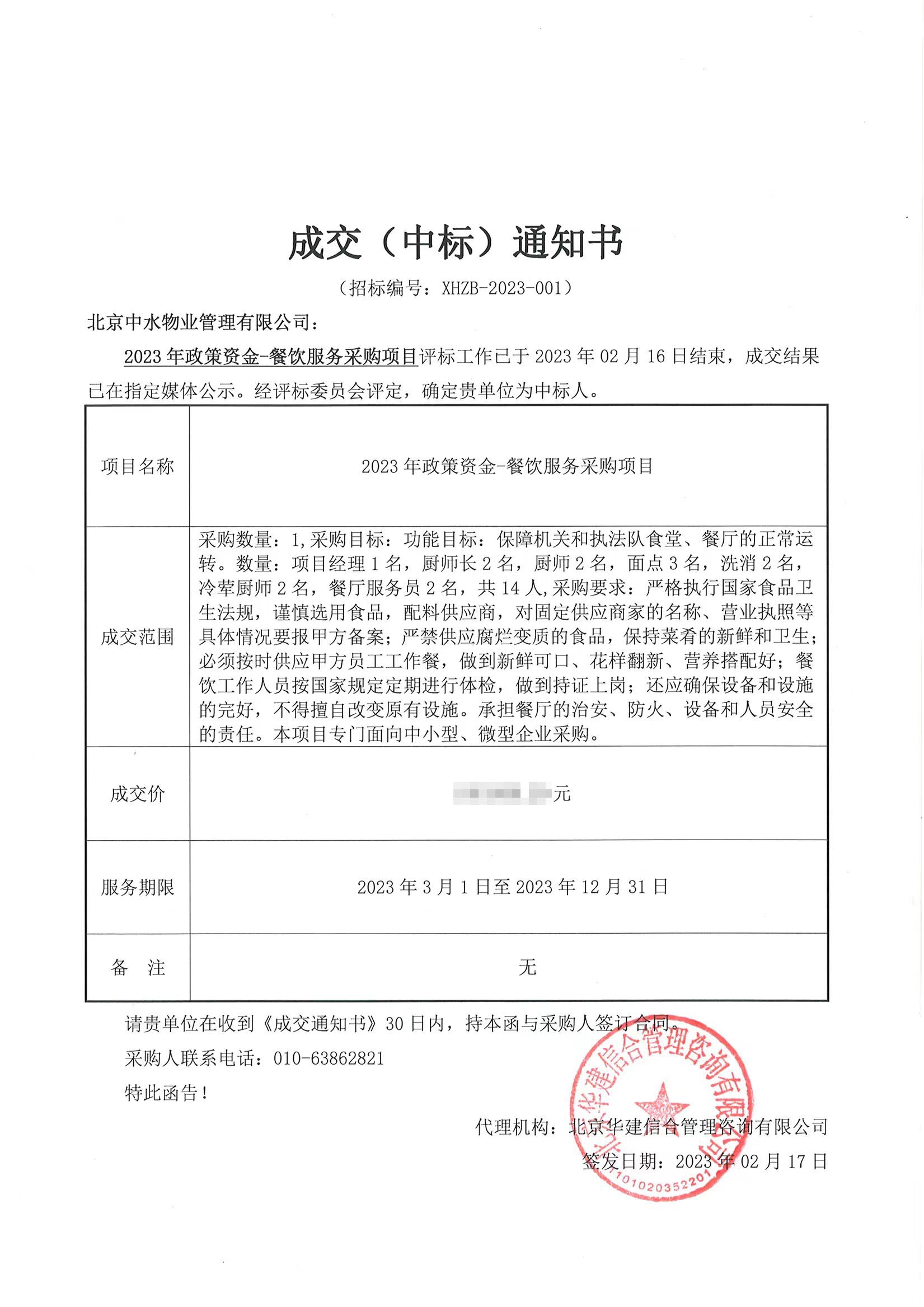 中水物业成功中标北京市西城区人民政府德胜街道办事处餐饮服务项目