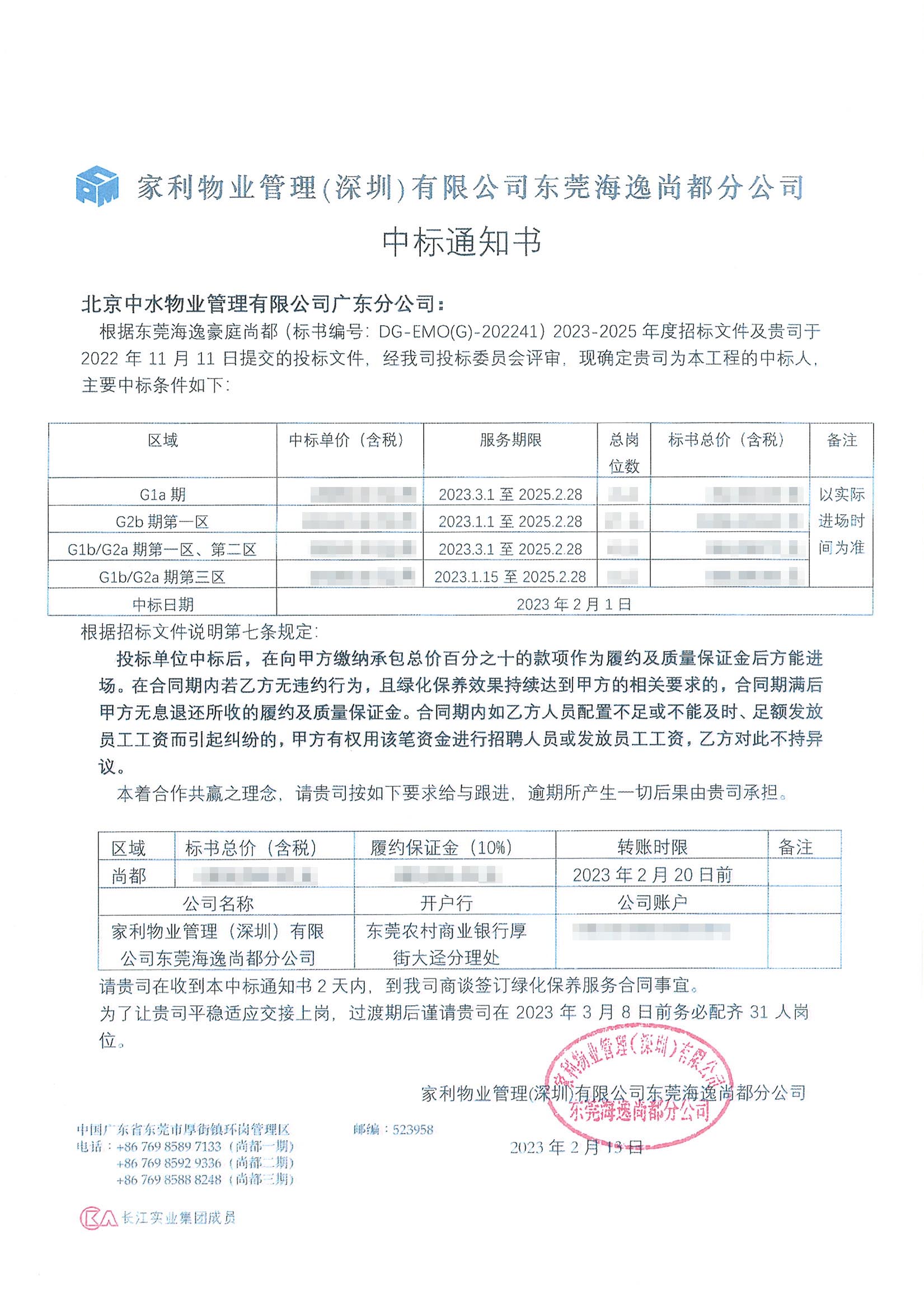 中水物业成功中标广东东莞海逸豪庭尚都绿化养护服务项目