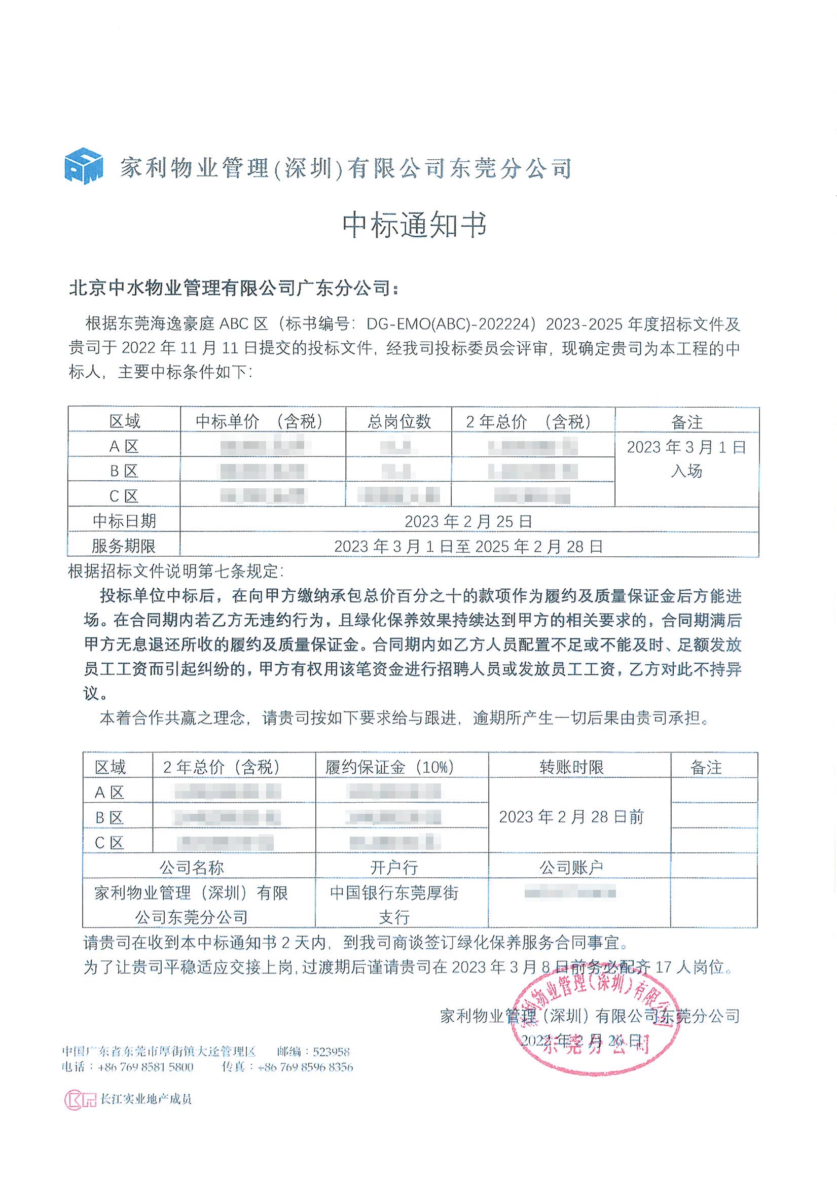 中水物业成功中标北京市丰台区人民政府六里桥街道办事处餐饮服务项目
