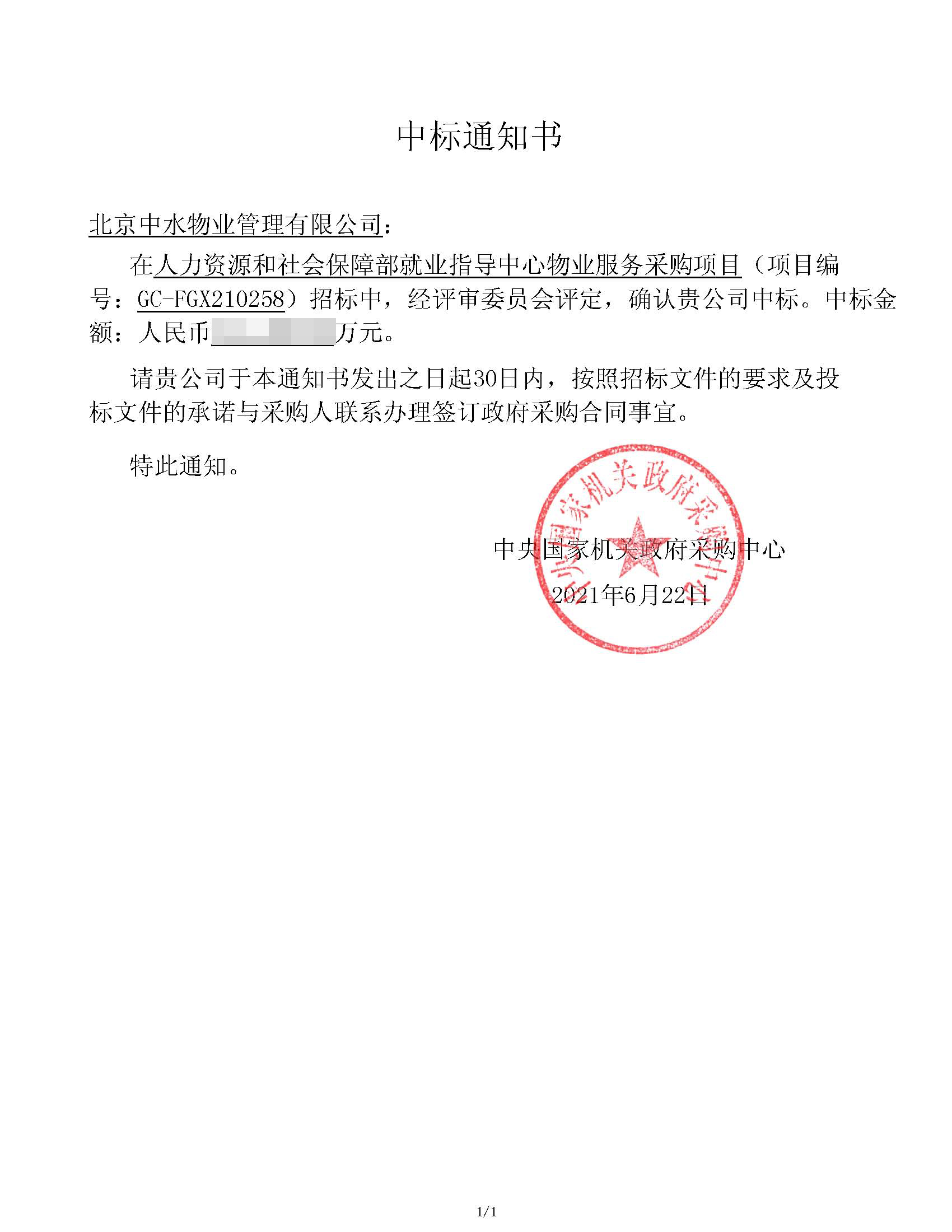人力资源和社会保障部就业指导中心物业服务采购项目成功中标