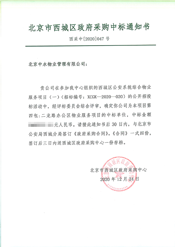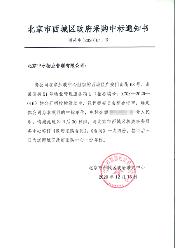 西城区广安门南街68号 、 南菜园街51号物业管理服务项目成功中标