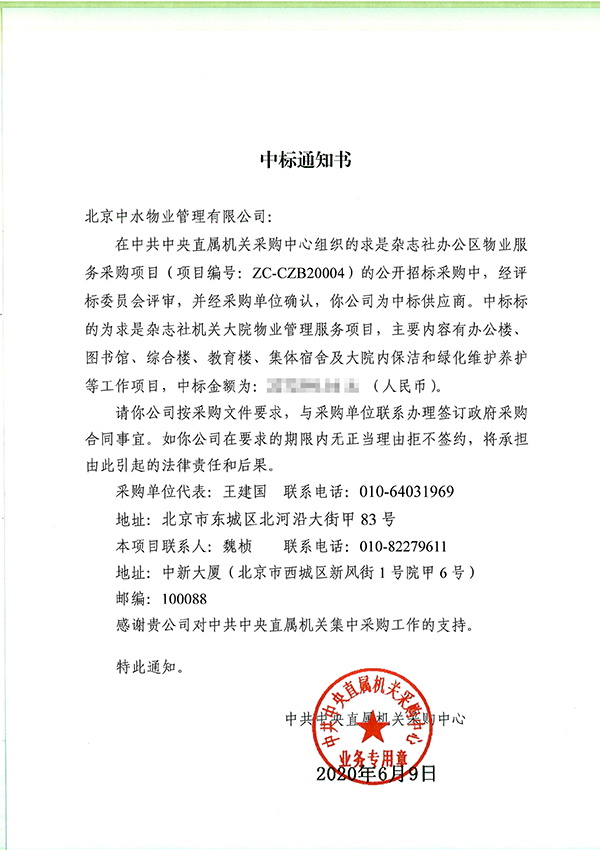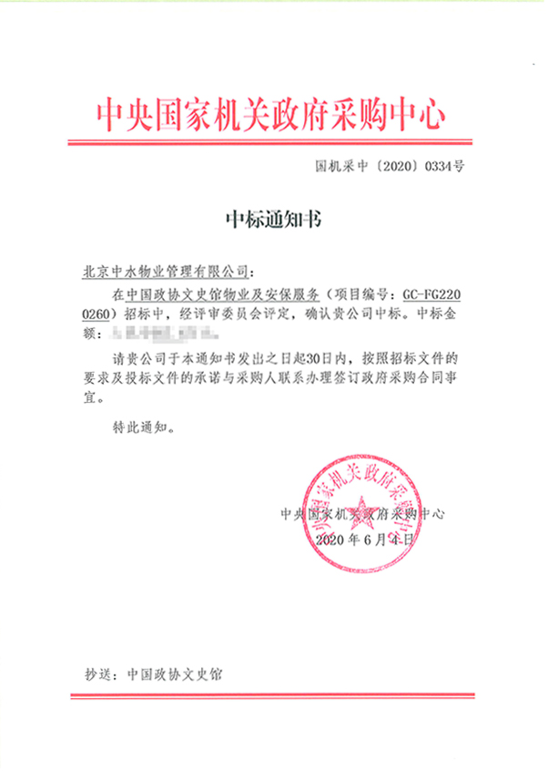 全国政协礼堂管理处2020年物业工程项目成功中标