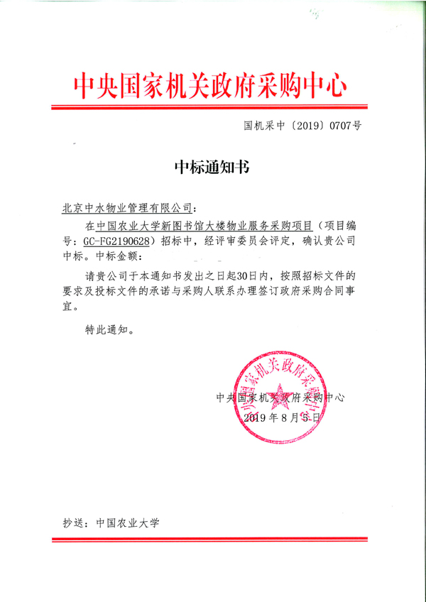 中国农业大学新图书馆大楼物业服务采购项目成功中标
