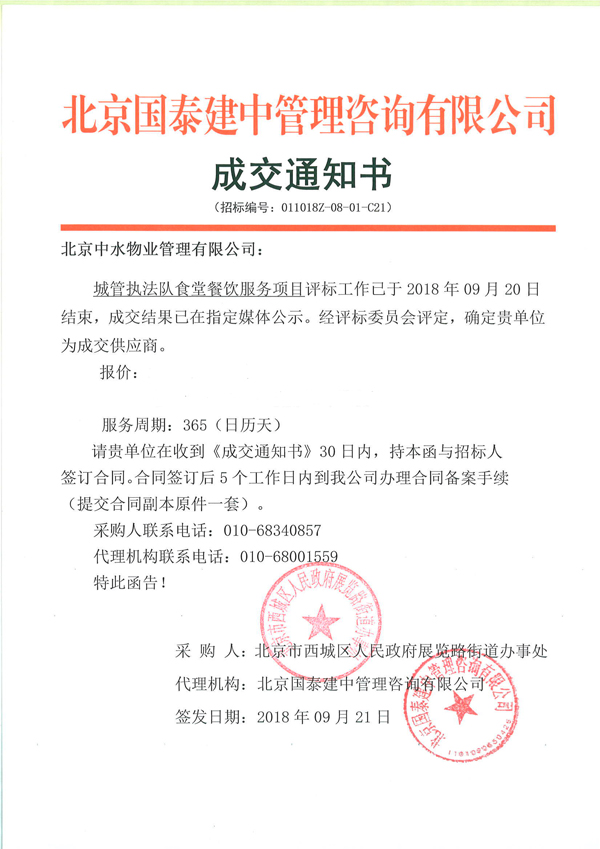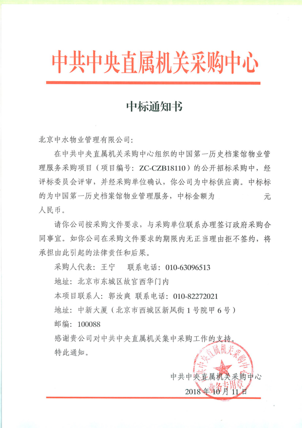 中央国家机关2018-2020年度物业管理服务定点采购项目第一包成功中标