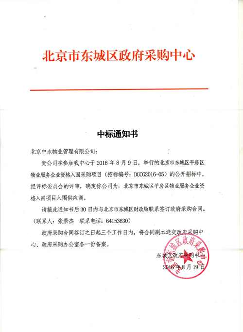 成功获得北京市东城区平房区物业服务企业供应商资格