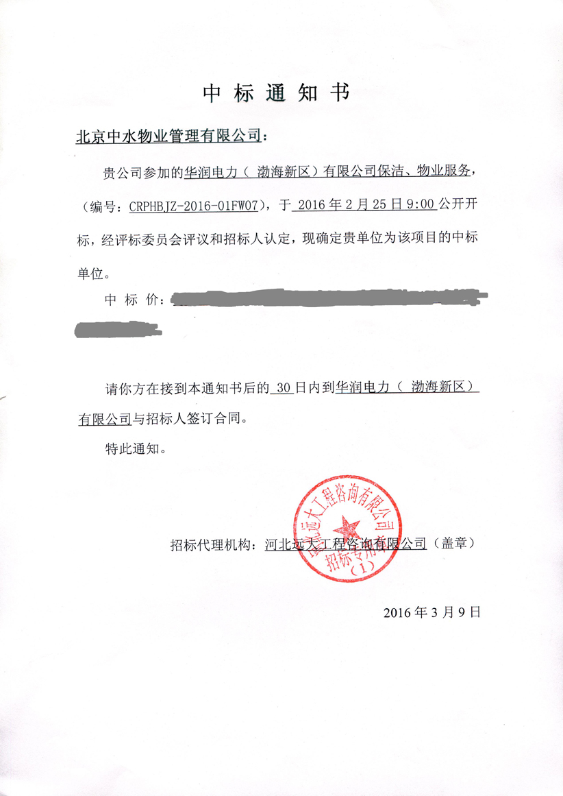 成功获得北京市政府采购中心一级物业服务公司供应商资格