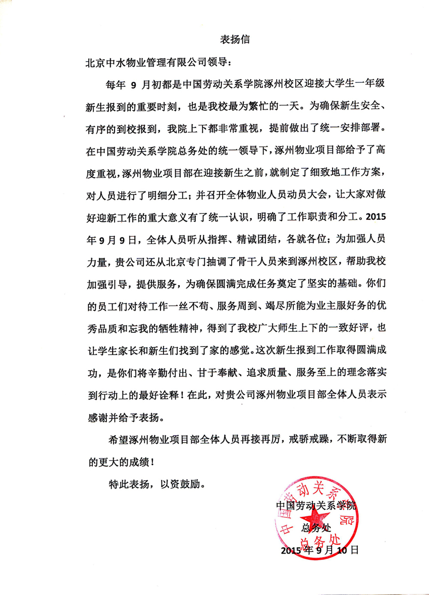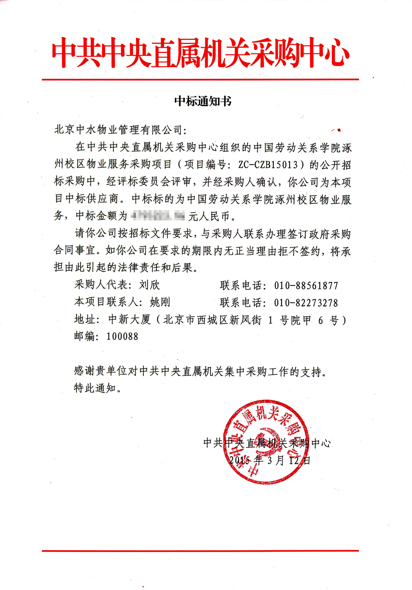 中国劳动关系学院涿州校区物业服务采购项目成功中标