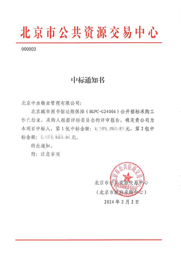 中水物业成功中标北京自贸试验区国际商务服务片区支行楼宇内部物业服务项目