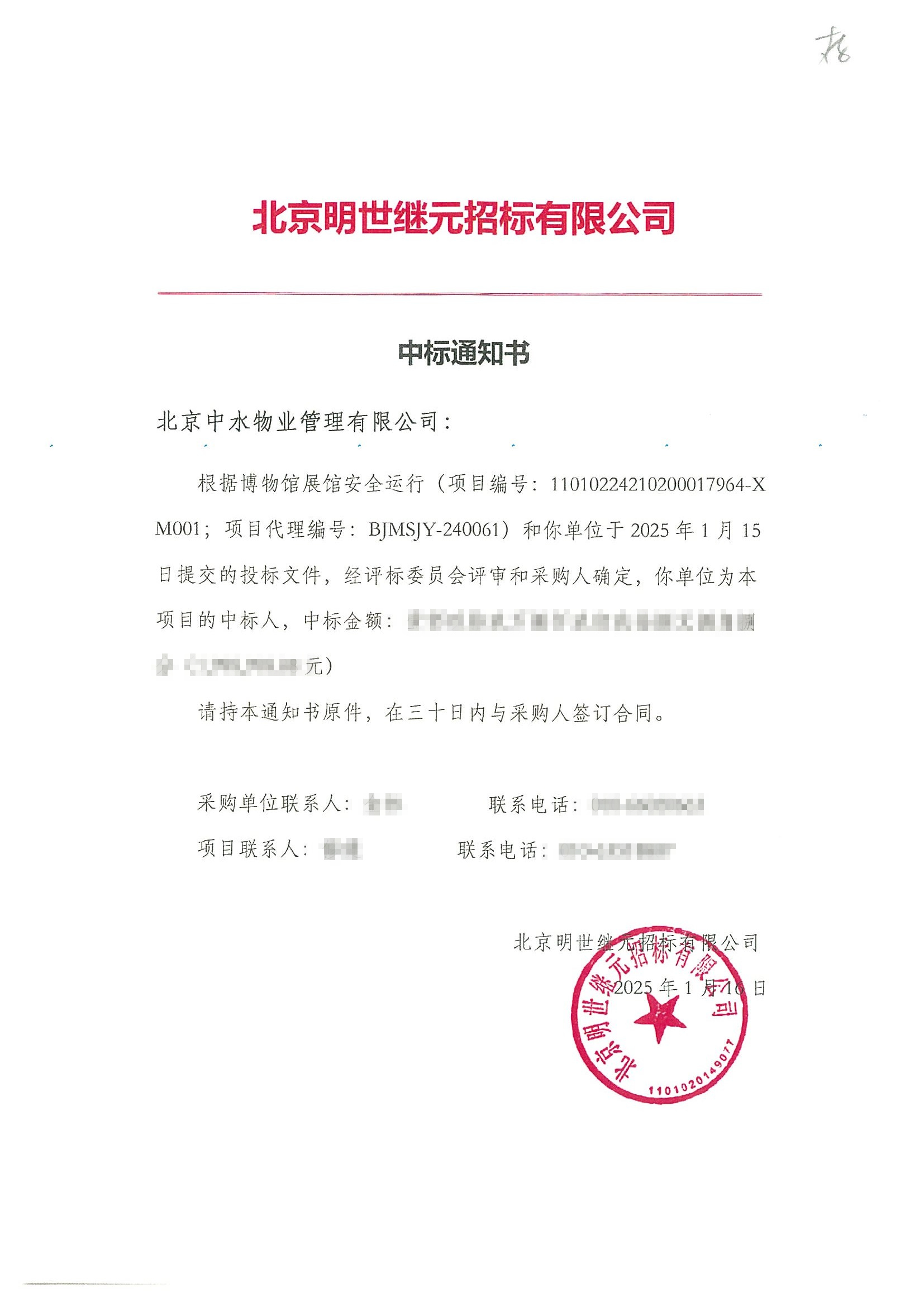 中水物业成功中标博物馆展馆安全运行物业管理服务项目
